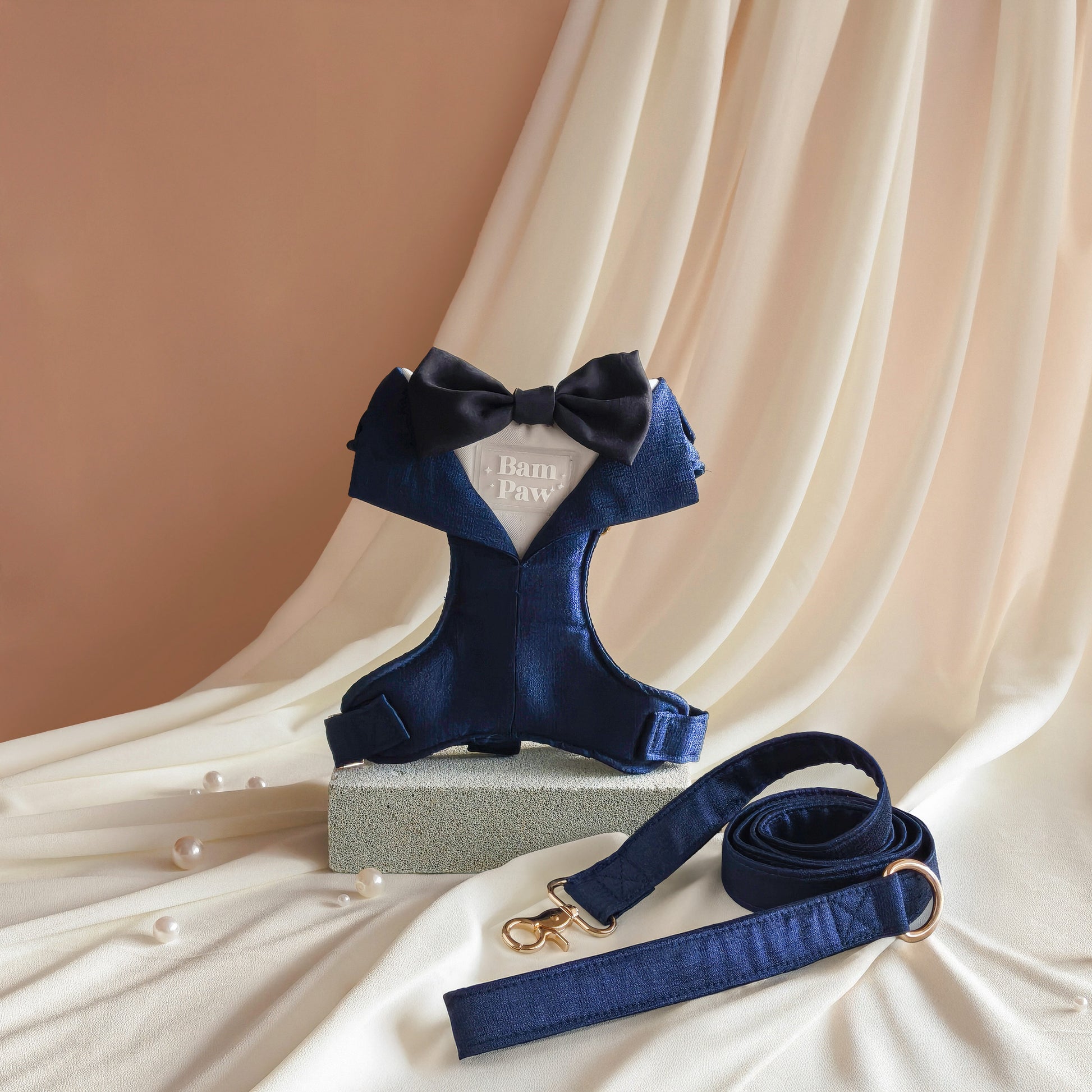 The Gentleman harness brings classic holiday charm with a modern twist. Crafted from rich, double-sided taffeta and fully padded for comfort, this piece features a built-in bowtie and tuxedo-inspired paneling that give it a refined, dressed-up look—perfect for festive gatherings, family photos, or just turning heads on a walk.